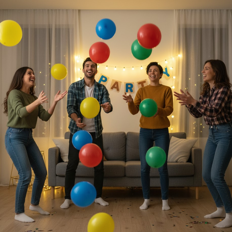 A lively game where players must keep their balloon in the air for a full minute using only one hand. It’s simple but full of chaos and laughter.