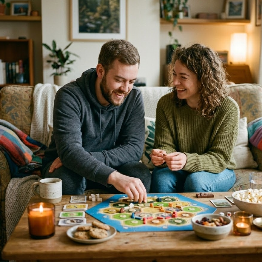 Classic board games become more exciting when played as a couple. You might choose strategy games, card games, or lighthearted party games. Moreover, adding small rewards for the winner makes it playful. Therefore, this couple game idea is ideal for cozy indoor date nights.