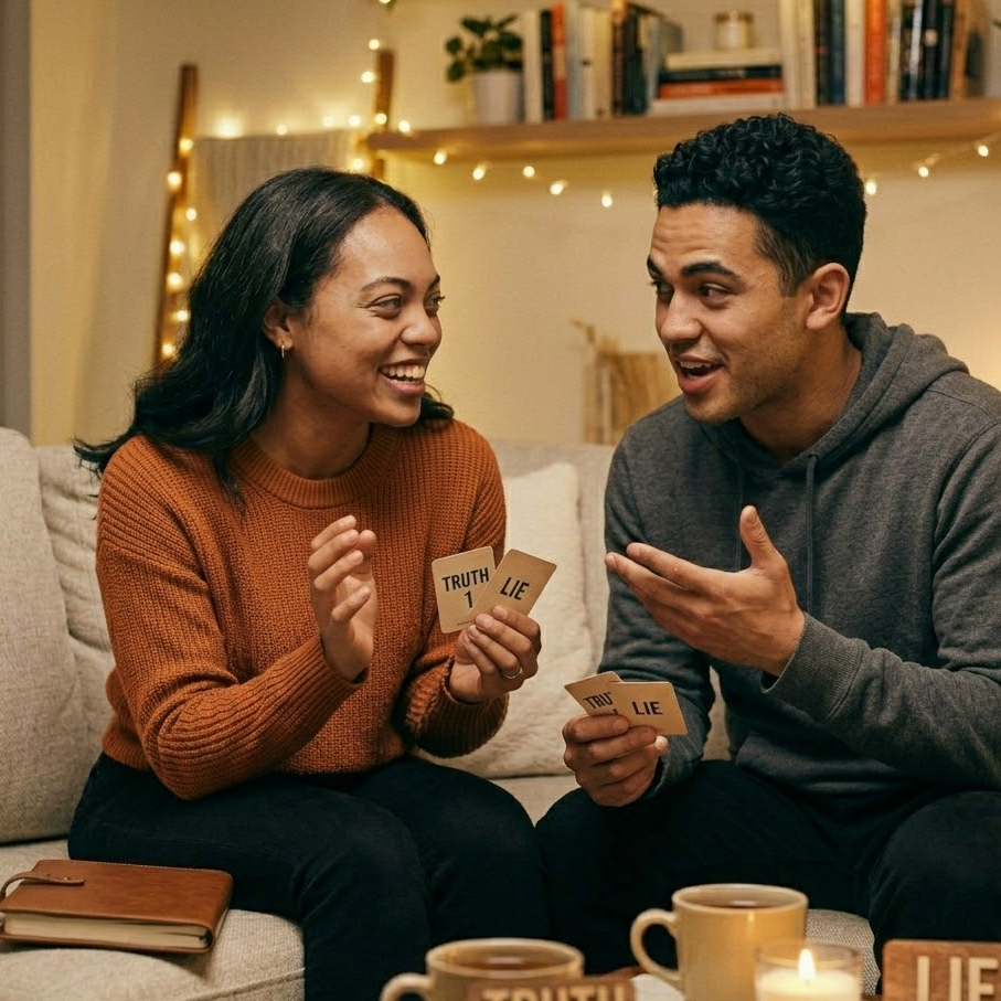 This classic game works wonderfully as a relationship game. You take turns sharing two truths and one lie about yourself. Additionally, guessing correctly sparks laughter and surprises. As a result, you learn unexpected details about each other. It keeps the mood light and engaging.