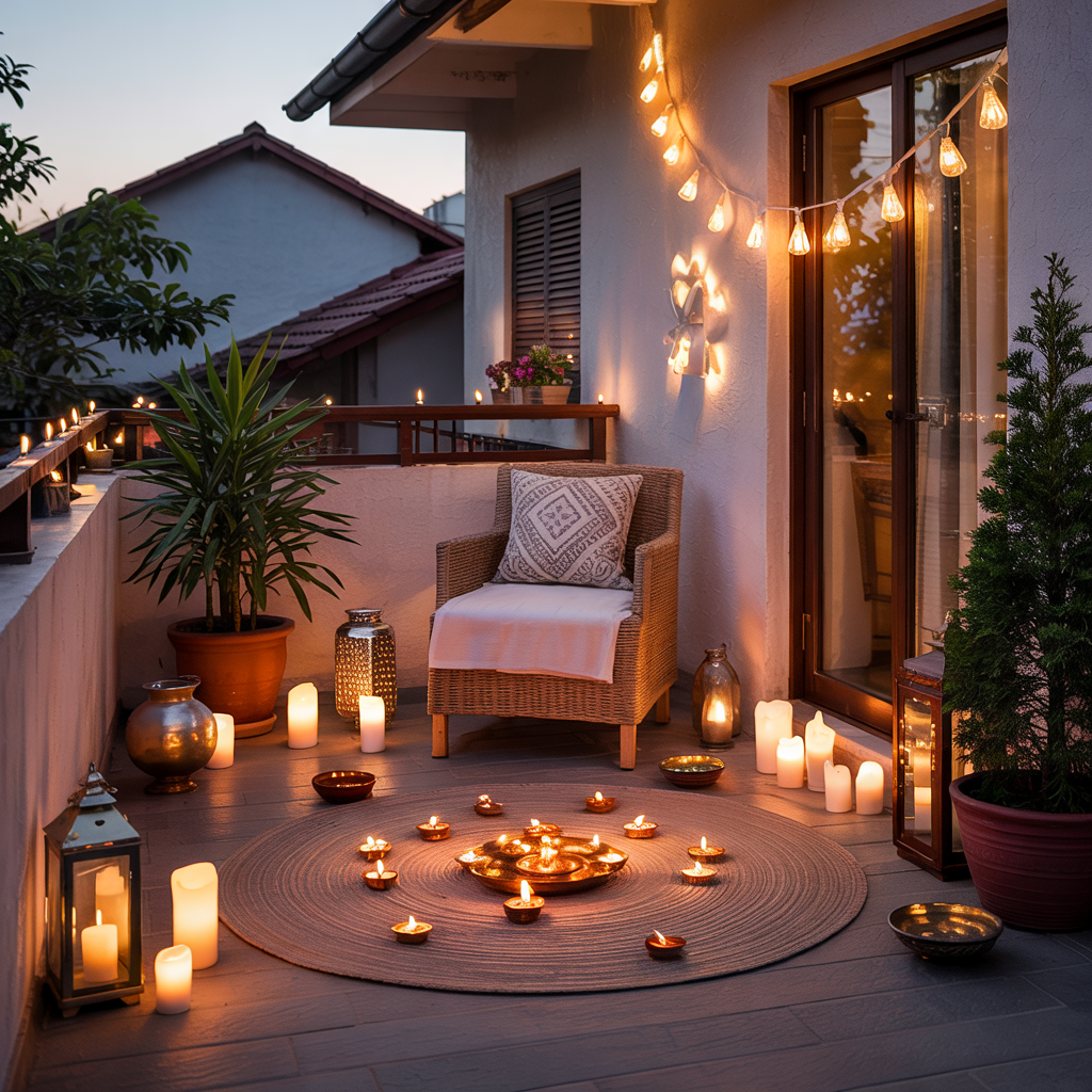 Lights are the soul of Diwali. Place diyas around the corners of your home and use fairy lights to highlight balconies or windows. The soft glow instantly adds warmth to your space.