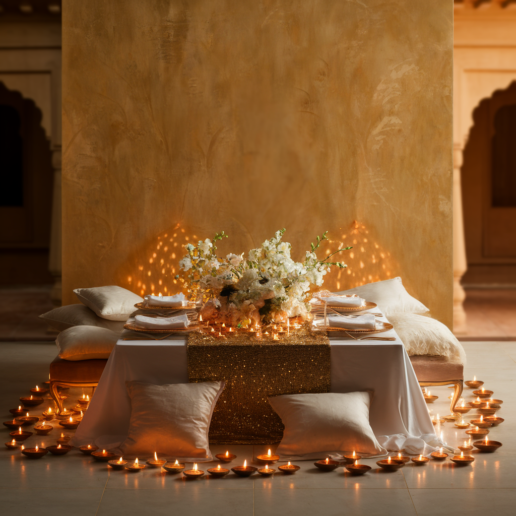 Choosing a theme gives your Diwali party a fun direction. You can go for a Bollywood-style evening, a golden glam theme, or even something traditional like “Royal Rajasthani.” It helps guests know how to dress and makes your decorations look more organized.