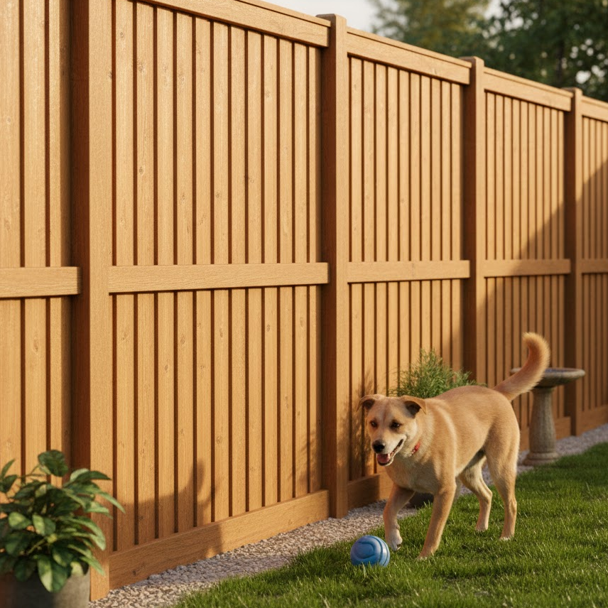 A tall wooden privacy fence works well for dogs that get easily distracted or bark at outside movement. It blocks visual triggers and creates a peaceful enclosed yard. Choose sturdy panels and place them close together to avoid gaps. This fence offers long lasting strength and blends naturally with outdoor spaces.