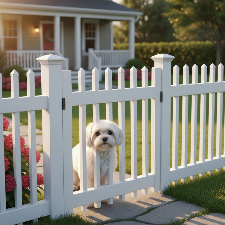 Picket fencing creates a friendly classic look while still offering safety. Choose narrow spacing to stop small or slim dogs from slipping through. You can also increase height if your pet likes to jump. It keeps your yard open and charming without compromising security.