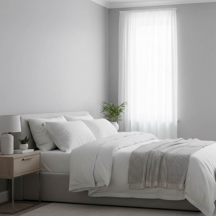 Light grey walls create an airy and open feel, making the bedroom look spacious and fresh. This shade works well with white bedding and simple furniture. Minimal decor keeps the space calm and clutter free. Light grey bedrooms are perfect for those who prefer a clean and peaceful sleeping environment.