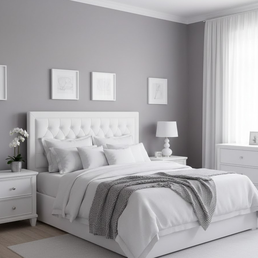 Grey and white is a timeless bedroom color combination. White keeps the room bright while grey adds sophistication. This pairing suits both modern and classic interiors. It creates a clean and elegant look that feels fresh and calming at the same time.