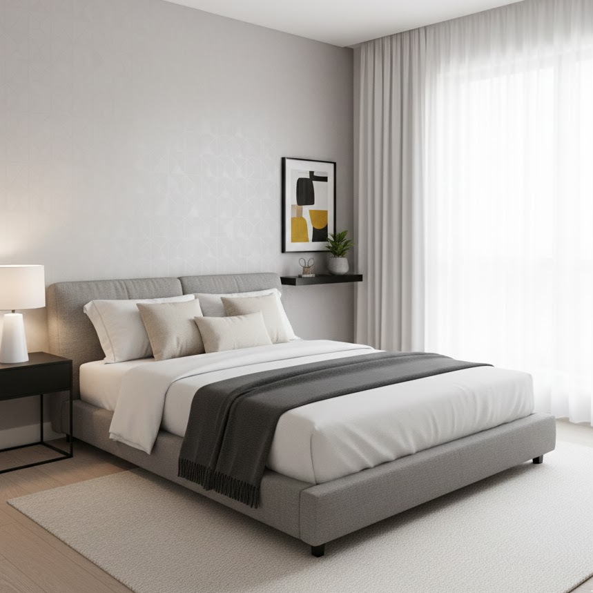 A modern guest bedroom uses sleek furniture subtle textures and balanced colors. Stick to neutral shades with one accent tone. Keep decor simple and functional. This style creates a clean and polished space that feels comfortable without being overly decorative.