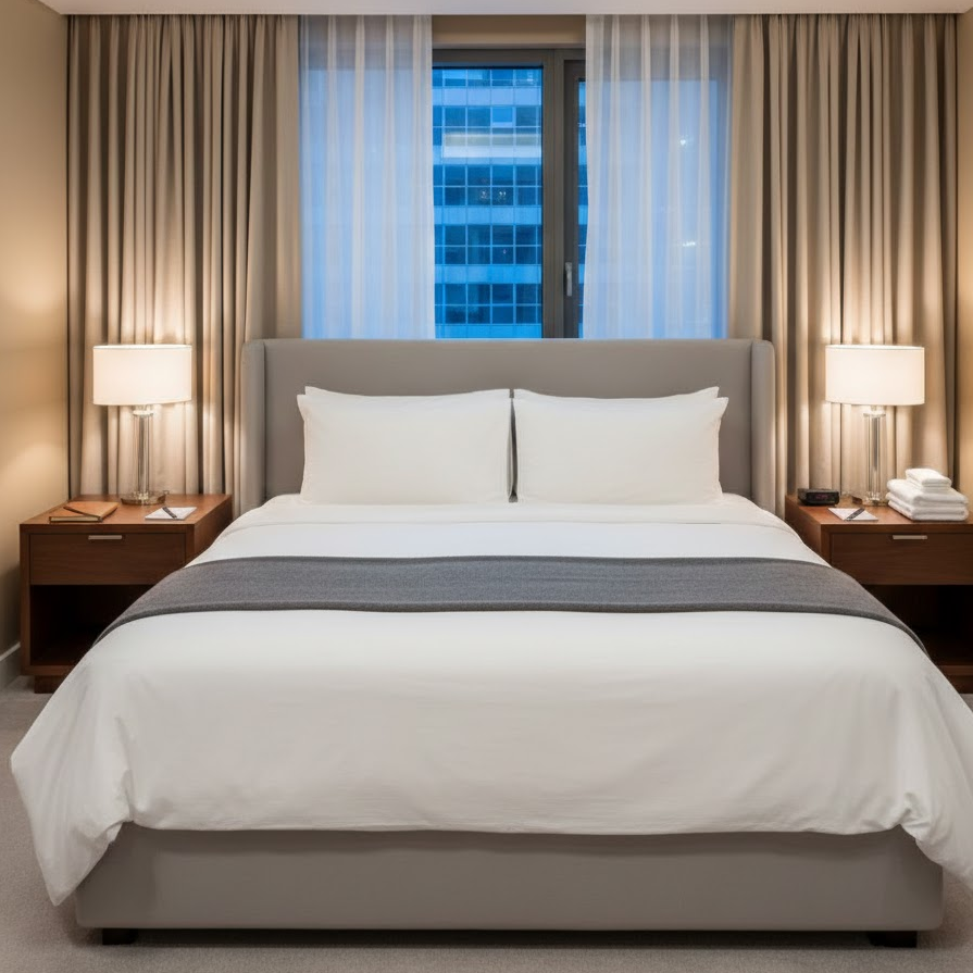 A hotel inspired guest bedroom emphasizes comfort and order. Choose crisp bedding neutral tones and matching bedside lamps. Keep surfaces clear and organized. This approach gives guests a familiar and relaxing experience similar to a well prepared hotel room.
