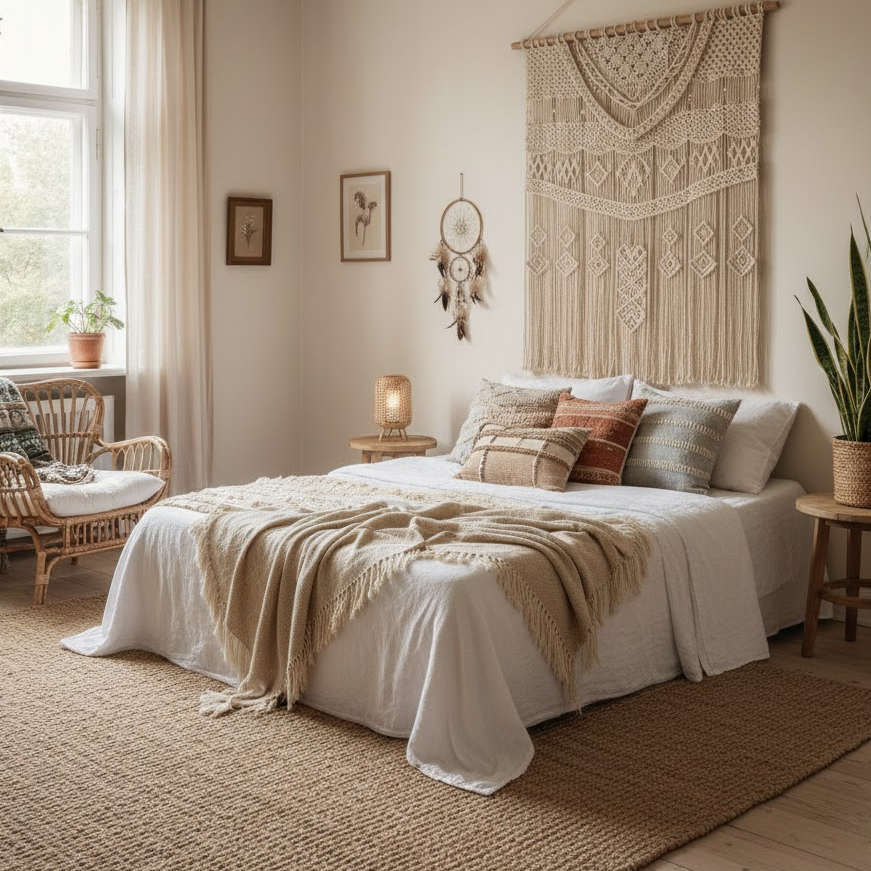 Bohemian decor adds character through layered textiles soft colors and natural elements. Use patterned cushions light throws and subtle wall art. Keep the overall look balanced so it feels inviting rather than busy. This style creates a relaxed and welcoming guest space.
