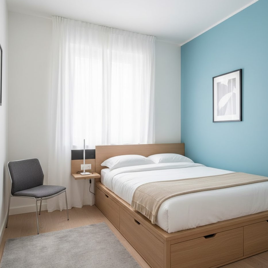 A compact guest bedroom focuses on smart use of space. Choose multifunctional furniture like storage beds or foldable seating. Light colors help the room feel larger. Simple decor keeps the space functional and comfortable for short or long stays.