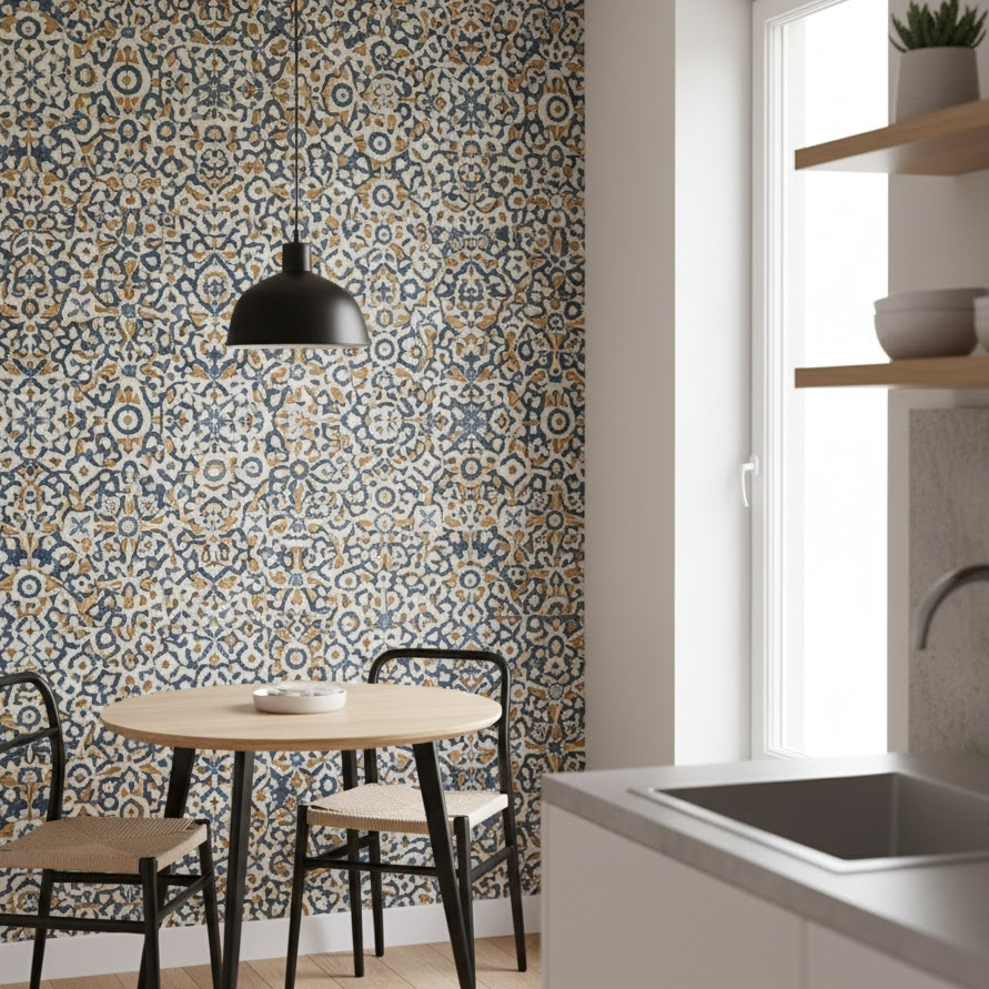 A statement kitchen wall instantly grabs attention. Patterned tiles, peel-and-stick wallpaper, or bold paint colors can create a focal point. Accent walls add depth and character without decorating every wall. This idea works best behind stoves, sinks, or dining corners in the kitchen.