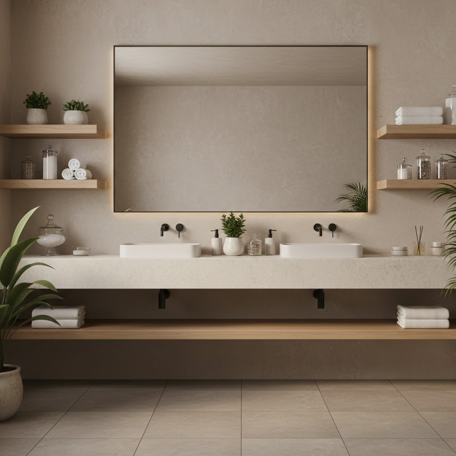 Bringing natural elements into your master bathroom decor can instantly warm up the space. For instance, indoor plants, wooden shelves, or stone countertops create an organic feel. As a result, your bathroom feels fresh and calming. Natural textures soften modern finishes and add character to your overall design.