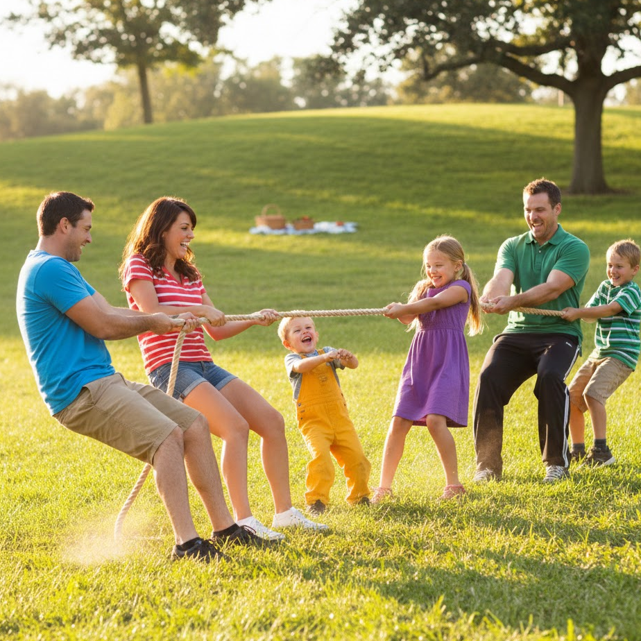 Tug of war is a classic outdoor family game that brings instant excitement. Divide your family into two balanced teams and use a strong rope. Mark a center line and let the pulling begin. This game builds teamwork, strength, and friendly competition. You can even create themed rounds like parents versus kids to make it more entertaining and interactive.