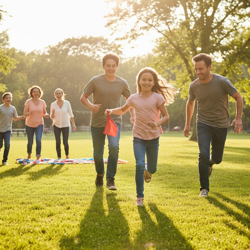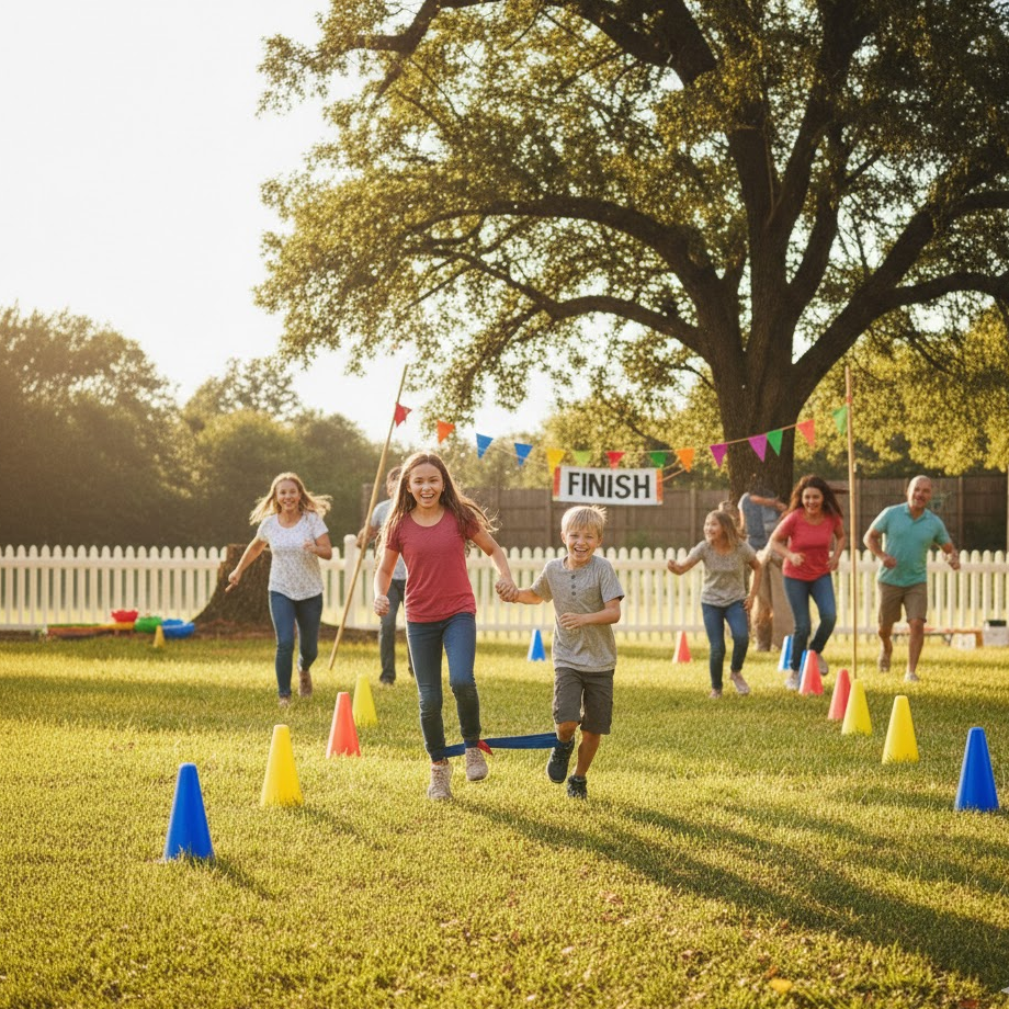 Relay races are energetic outdoor games that promote teamwork and coordination. Divide family members into teams and set up small challenges such as running, skipping, or balancing objects. Each member completes a task before tagging the next teammate. Relay races create excitement and friendly competition while keeping everyone active and engaged.