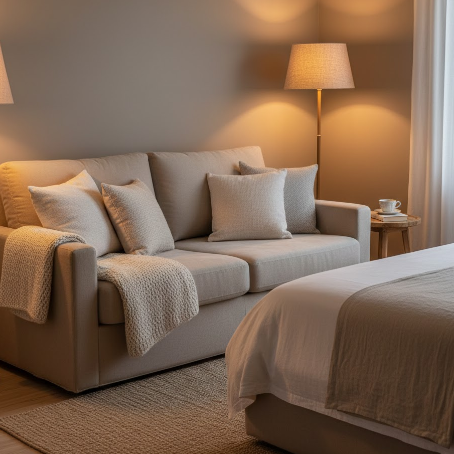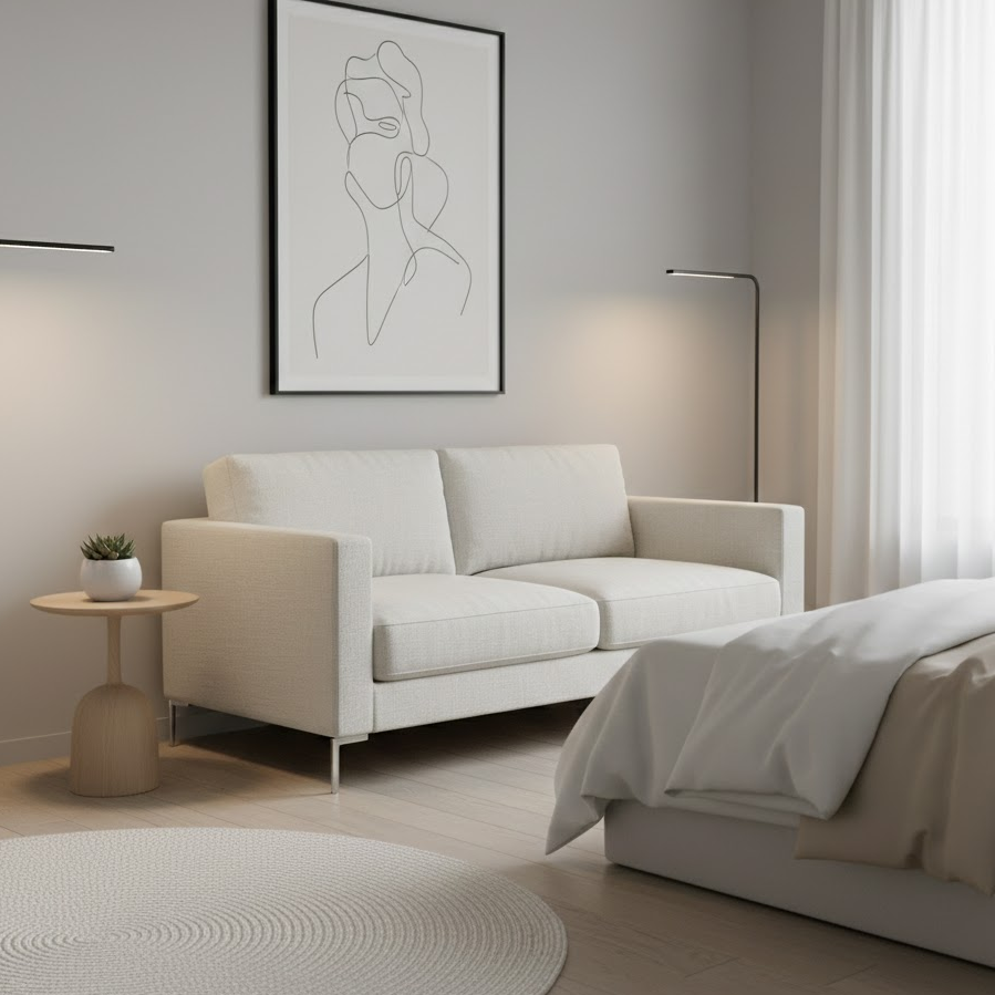 Choose a fabric sofa to make your bedroom feel warm and inviting. Soft textures create a comfortable atmosphere and work well for daily use. Neutral colors blend easily with bedroom decor and help maintain a calm and relaxing environment.
