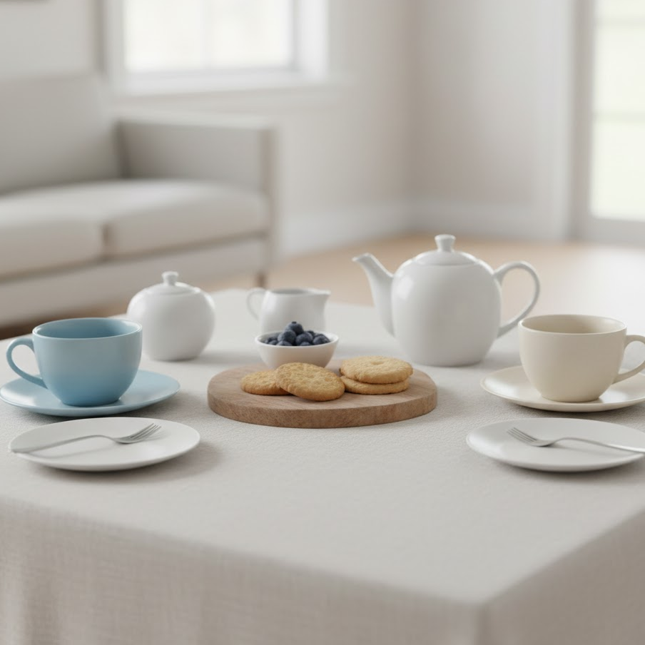A minimalist tea party focuses on simplicity and clean presentation. Use neutral table settings minimal decor and a small selection of quality teas. This approach creates a calm and modern atmosphere that feels effortless and refined.