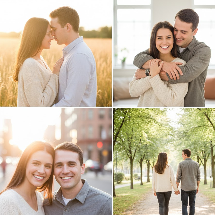 - Golden Hour Glow: Capture soft sun kissed portraits during sunset where the warm light naturally enhances romantic vibes.